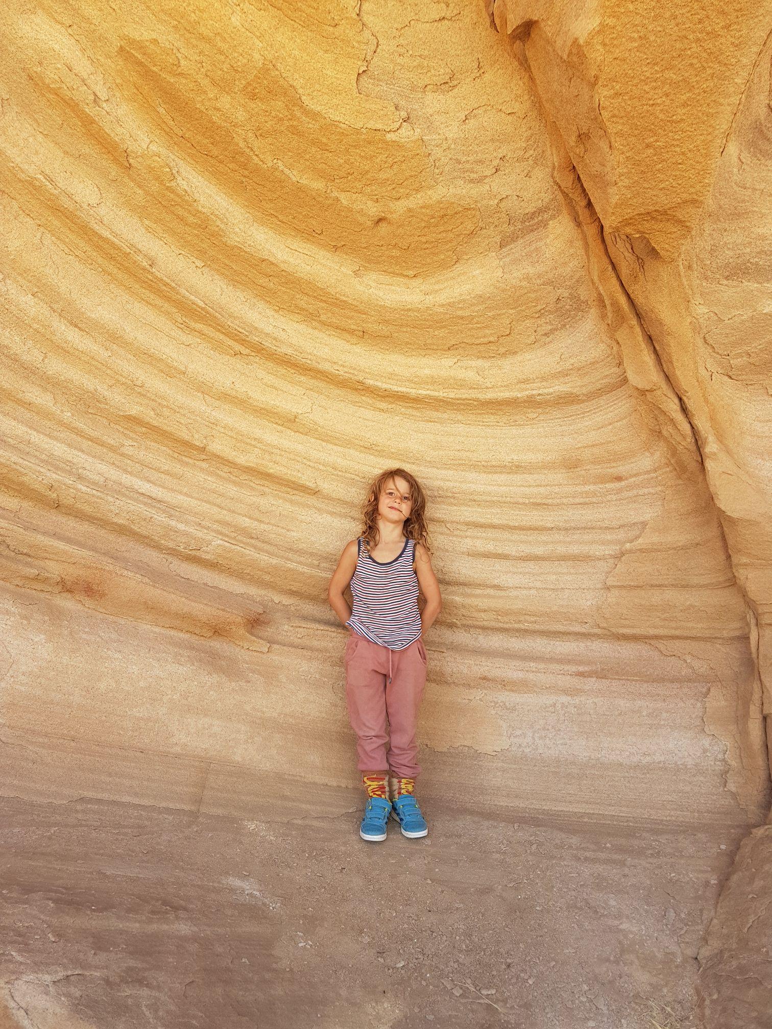 Später gibt es auf der Strecke mehrere Picknickplätze, an denen man auch wild übernachten kann. In deren Nähe sind oft „Höhlen“, genauer gesagt Felsüberhänge, die etwas vor Wind und Wetter schützen können. Die meisten davon haben wir uns angeschaut. Sowohl aus Neugier, als auch, um uns allen die Gelegenheit zu geben, sich die Beine zu vertreten. Meist konnte man auch klettern, was Paul natürlich auch ganz toll fand. An manchen dieser Felsen konnten wir Tiere sehen, seien es Kapkrähen, die sich mit Raubvögeln ums Territorium stritten, oder Felsenratten, die schnell (viel zu schnell für irgendwelche Fotos) vor uns weghuschten.